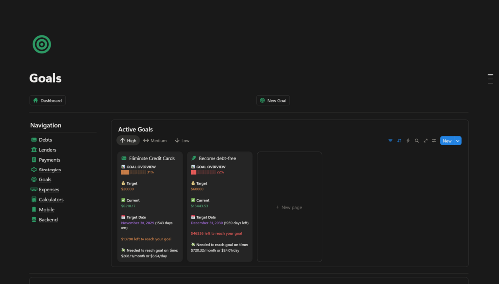 - Debt Goals β Stay motivated by linking personal financial goals directly to debts and strategies.